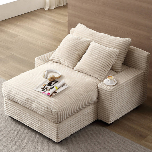 Aukfa 55 Inch Chaise Lounge Indoor Oversized Corduroy Sofa Chair Bed w/ 3 Pillows for Living Room Bedroom, Black