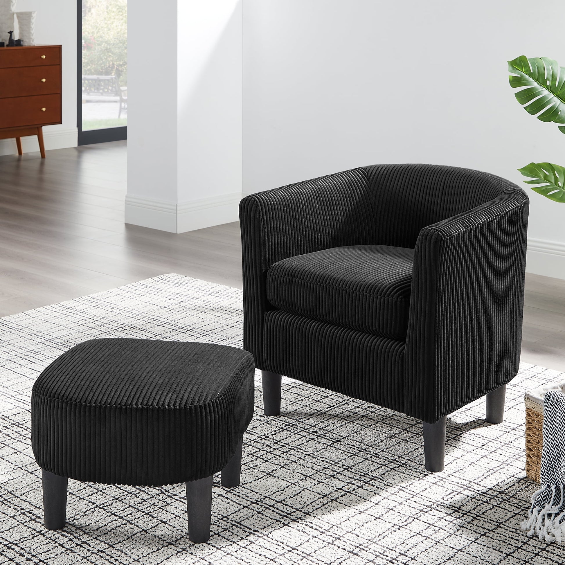 Skin-Friendly&Sturdy Chair:The arm chair and ottoman are cushioned with soft sponge for added comfort. Corduroy is comfortable and skin-care.This accent chair for living room make of plastic legs and sturdy rubber wood plywood frame to ensure durability and stability of this reading chair.