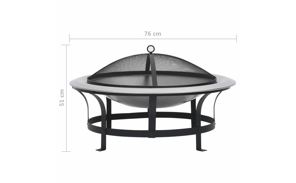 vidaXL Outdoor Fire Pit with Grill 29.9 Inch -, Weatherproof Steel Construction, Safety Mesh, Wood-Handled Poker, Ideal for Deck, Patio, Backyard Use
