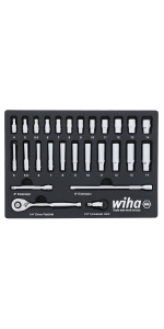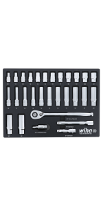 Wiha 33895 29 Piece 1/2" Drive Professional Standard and Deep Socket Tray Set - Metric